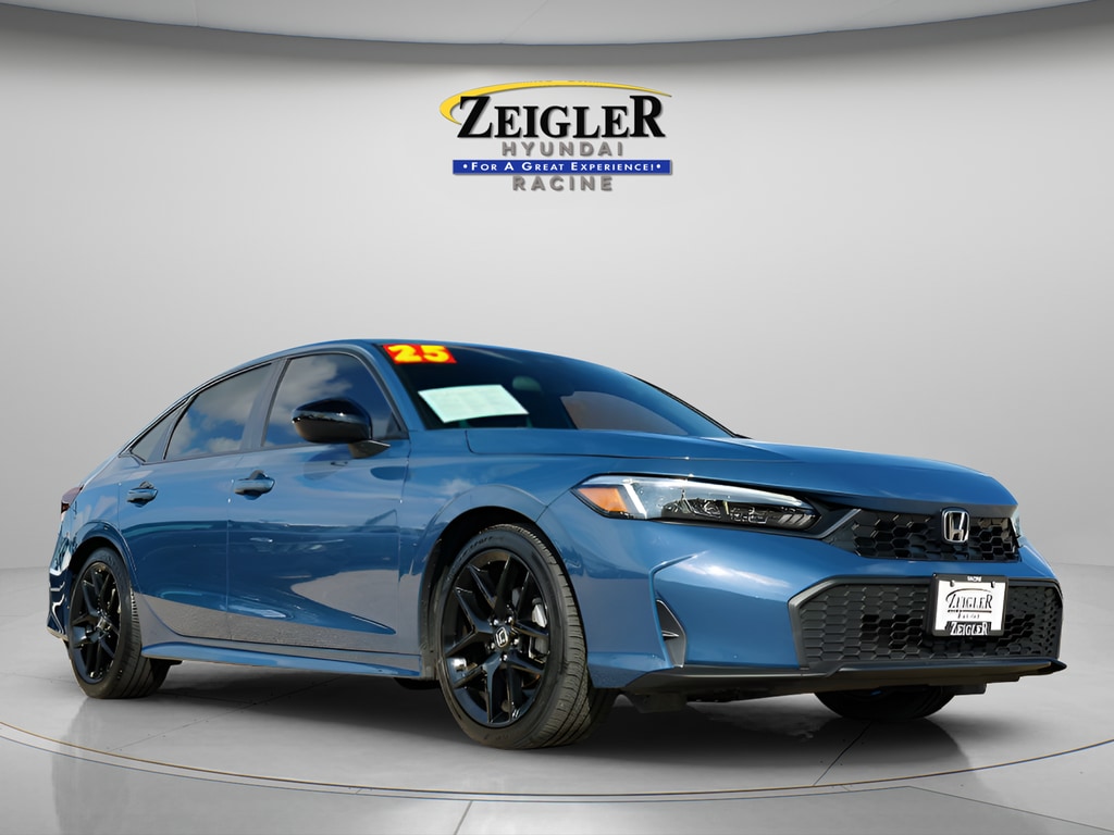 Black w/Cloth/Leatherette Seating Surfaces. Zeigler Hyundai Genesis of Racine is excited to offer this 2025 Honda Civic in Blue with Black w/Cloth/Leatherette Seating Surfaces. This Civic is well equipped with Black w/Cloth/Leatherette Seating Surfaces, along with Black w/Cloth/Leatherette Seating Surfaces, 4-Wheel Disc Brakes, 8 Speakers, ABS brakes, Adaptive Cruise Control: Adaptive Cruise Control (ACC) with Low-Speed Follow, Air Conditioning, Alloy wheels, AM/FM radio, Apple CarPlay/Android Auto, Auto High-beam Headlights, Automatic temperature control, Blind Spot Information (BSI) System warning, Brake assist, Bumpers: body-color, Cloth/Leatherette Seating Surfaces, Delay-off headlights, Driver door bin, Driver vanity mirror, Dual front impact airbags, Dual front side impact airbags, Electronic Stability Control, Emergency communication system: HondaLink, Exterior Parking Camera Rear, Four wheel independent suspension, Front anti-roll bar, Front Bucket Seats, Front Center Armrest, Front reading lights, Fully automatic headlights, Heated door mirrors, Illuminated entry, Knee airbag, Leather Shift Knob, Leather steering wheel, Low tire pressure warning, Occupant sensing airbag, Outside temperature display, Overhead airbag, Panic alarm, Passenger door bin, Passenger vanity mirror, Power door mirrors, Power steering, Power windows, Radio data system, Radio: 180-Watt Audio System, Rear anti-roll bar, Rear seat center armrest, Rear side impact airbag, Rear window defroster, Remote keyless entry, Security system, Speed control, Speed-sensing steering, Split folding rear seat, Steering wheel mounted audio controls, Tachometer, Telescoping steering wheel, Tilt steering wheel, Traction control, Trip computer, and Wheels: 18" Gloss Black Alloy and additional premium features designed for comfort, performance, and technology. âFOR A GREAT EXPERIENCE,â visit Zeigler Hyundai of Racineâ"where we take pride in treating our customers like family. With a 4.7 Google rating, we are one of the highest-rated Hyundai dealers in Wisconsin. Every vehicle undergoes a multi-point safety inspection and is professionally cleaned and disinfected for your peace of mind. Conveniently located off I-94 at Exit 333, we proudly serve Racine, Mount Pleasant, Sturtevant, Kenosha, Milwaukee, Oak Creek, Waukesha, and surrounding areas. Our Factory-Certified Sales Consultants consistently earn top customer satisfaction ratings across Southeast Wisconsin. We specialize in new Hyundai, Certified Pre-Owned Hyundai, Genesis, and a wide selection of vehicles to fit all budgets. Competitive purchase and lease options are available. Browse our full inventory online at zeiglerhyundairacine.com. Donât see the exact vehicle you want? Weâll help locate one and can arrange shipping or delivery if needed. Price may exclude certification, accessories, LoJack, packages, taxes, doc fees, or other dealer fees. Dealer not responsible for pricing errors. Used vehicle values vary based on mileage, condition, and usage. Some vehicles may be subject to unrepaired safety recalls. Check recall status by VIN at vinrcl.safercar.gov. See dealer for complete details. 31/39 City/Highway MPG 31/39 City/Highway MPG